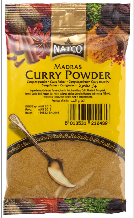 Natco Madras Curry Powder is an authentic blend of exotic spices which should be used in Indian cooking. Excellent for adding flavour to sauces, soups and rice. Our products are manufactured in a site that handles gluten, soya, milk, nuts, peanuts, sesame, mustard, celery and sulphites.