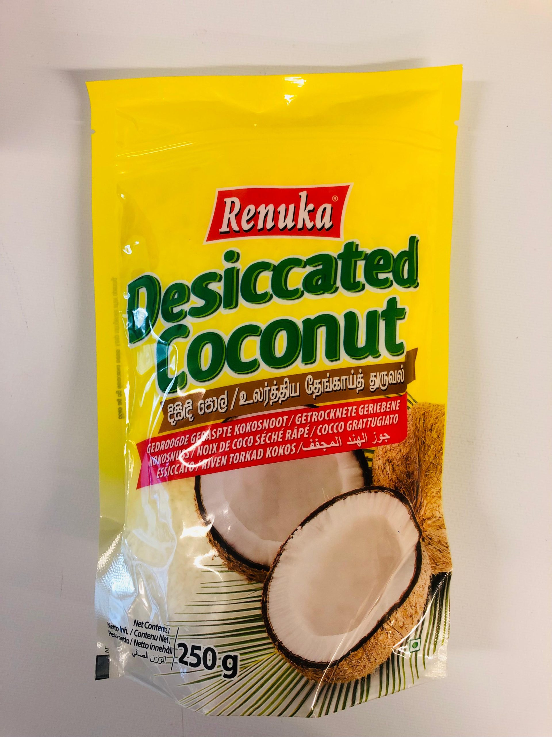 100% natural and contains only coconut!! Ideal replacement for freshly grated coconuts. The 250g pack is offered in a convenient standup zipper lock pouch. The 500g and 1kg SKUs are supplied in attractively printed pillow pouches. The research says “desiccated coconut contains a wide range of minerals that expedites the human body’s absorption process and holds tissues together”. Exceptionally high in nutrients makes it a valuable addition to many meals. Has great culinary uses ranging from curries to soups and the tastiest desserts. Shelf Life: 24 months (unopened)